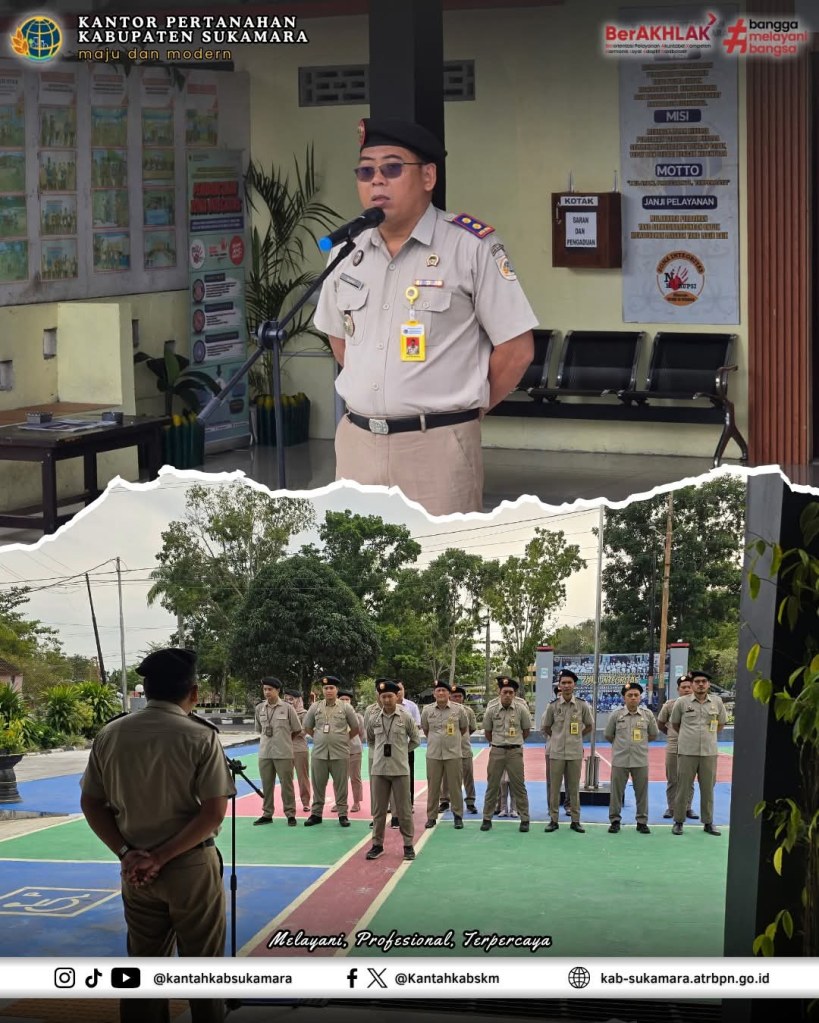 Pada Senin (19/1/2026) Kantor Pertanahan Kabupaten Sukamara telah melaksanakan Apel Pagi rutin sebagai sebagai sarana konsolidasi awal pekan dalam rangka memperkuat semangat, disiplin, dan arah kebijakan internal bagi seluruh pegawai. Adapun kegiatan Apel Pagi dipimpin langsung oleh Kepala Kantor Pertanahan Kabupaten Sukamara, Irwandi, S.H., M.H. dan diikuti oleh seluruh pegawai.